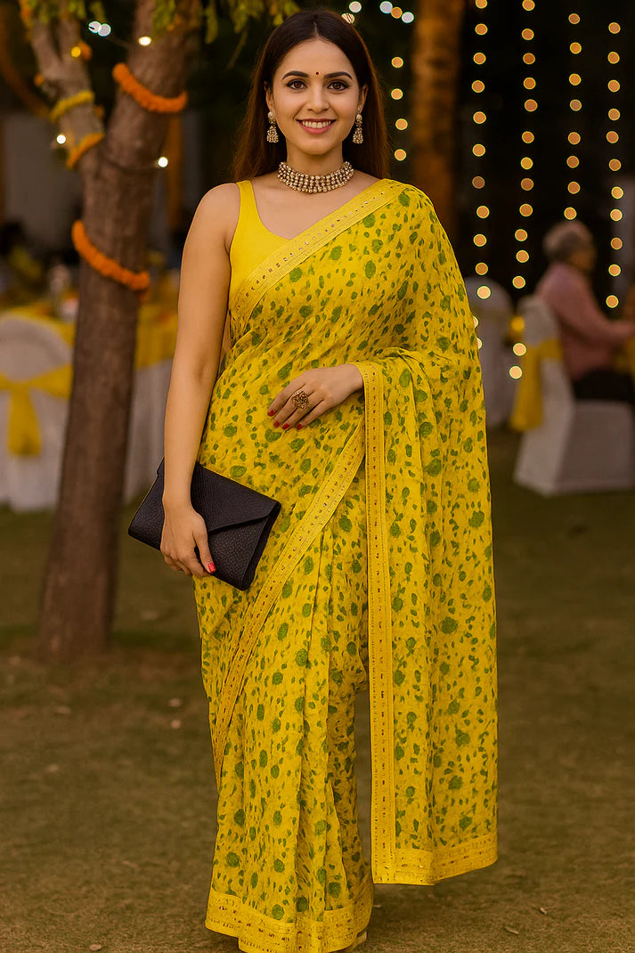 Turn every celebration into a style statement with this combo of 2 lightweight floral sarees with sparkling sequin borders.