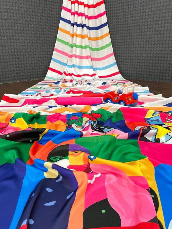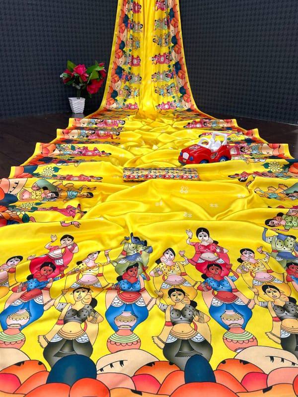 A Digital Printed Satin Silk Saree – Modern, Elegant & Trendy