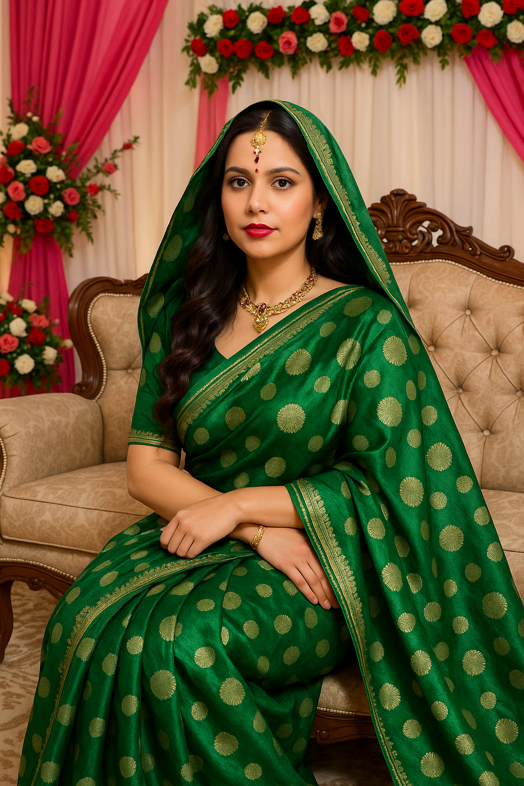 Elegant Green Vichitra Silk Saree with Foil Print & Samosa Lace Border