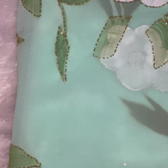 Crafted from Pure Royal Georgette, the saree feels soft, flowy, and premium against the skin, giving you effortless comfort with a designer finish. Pair it with statement jewelry or chic heels for the ultimate showstopper look — perfect for weddings, festive nights, or even your next viral Instagram reel.