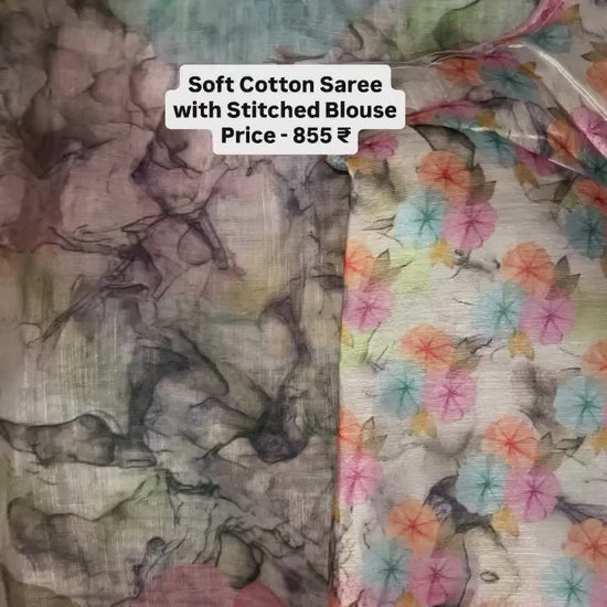 Soft Cotton Handloom Saree with Stitched Blouse – Elegant Daily & Office Wear Saree